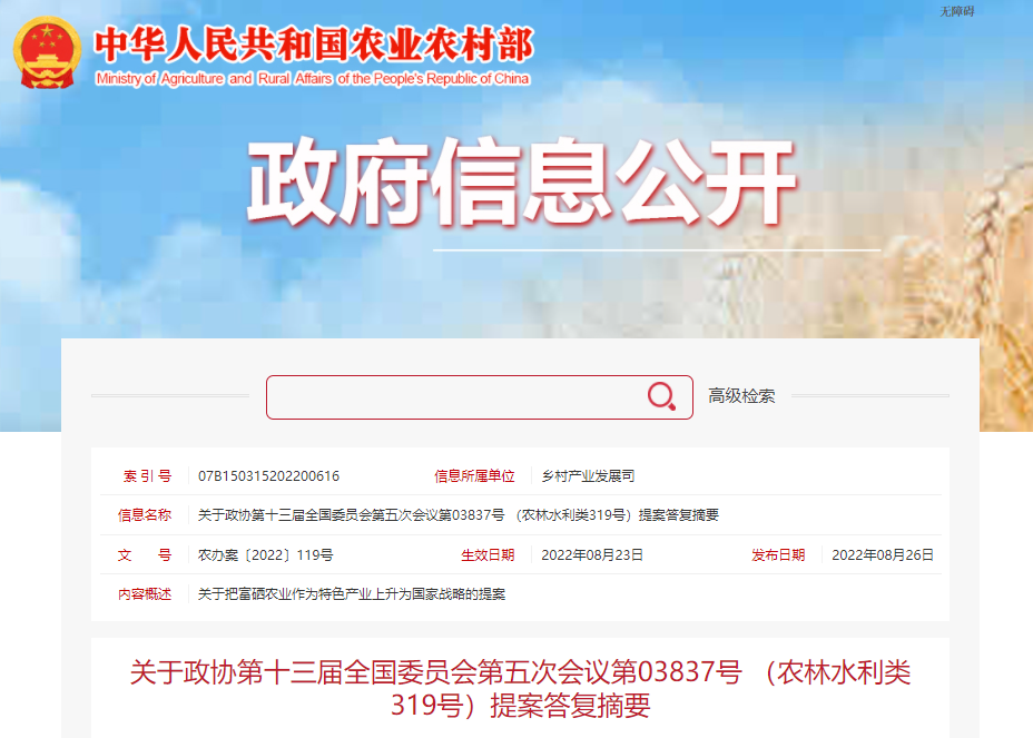 8月26日,农业农村部网站发布《关于政协第十三届全国委员会第五次会议第03837号 (农林水利类319号)提案答复…